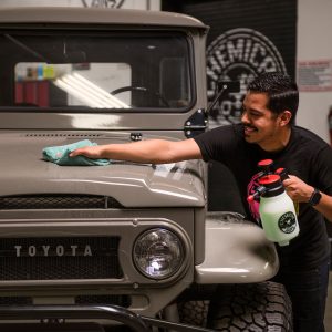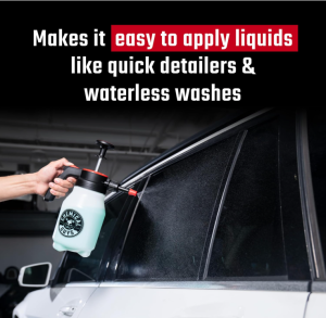 Mr. Sprayer is the revolutionary new way to apply detailing liquids without water hoses. buckets. power cords. or even tiring out your fingers. Just prime. point. and shoot a fine mist of product onto your vehicle.